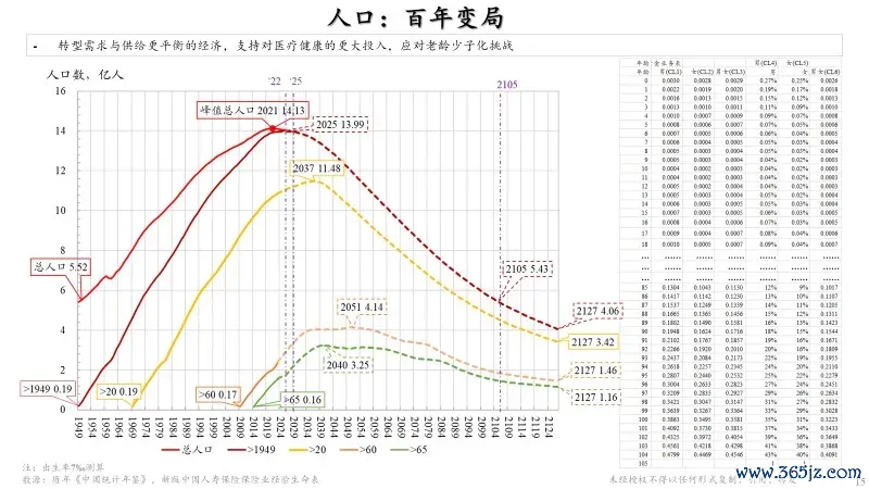 为什么要终点疼爱卫生医疗服务呢?这里浮浅重申一个迫切的事实,这不错称为东谈主口的百年变局。中国的东谈主口总和在 1949 年的时候大略是 5.5 亿,到 2021 年达到峰值 14.13 亿。把柄生命表料想的平均变化章程,70 年间东谈主口从 5 亿多增长到 14 亿多,翻了两倍;而再过 70 年,如无根人道紧要变化,东谈主口将渐渐回落至原有水平,这一变化将对经济社会发展产生深刻影响。明天 70 年,东谈主口总量握续减少,老龄化加剧就尤其需要卫生医疗的支握。它的影响是平凡的,可能有些服务行业刚启动扩展,目的群体就启动减少,这就需要咱们采选更科学的照拂和展望措施,要充分意志到东谈主口身分是影响发展的一个相等紧要的变量。