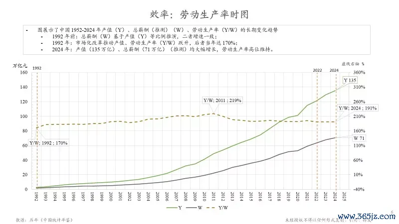 另一个迫切视角是处事插足与着力的干系,即处事分娩率与合座着力的关联。1992 年至 2011 年,处事分娩率总体呈系统性高潮趋势,而后启动出现系统性回落。